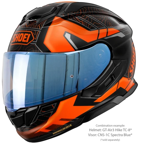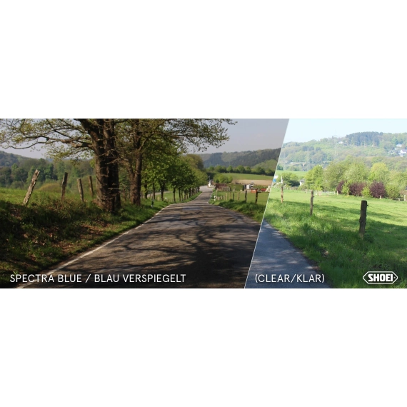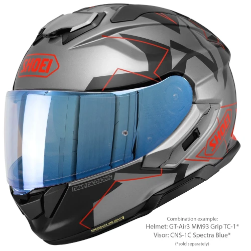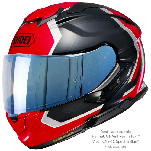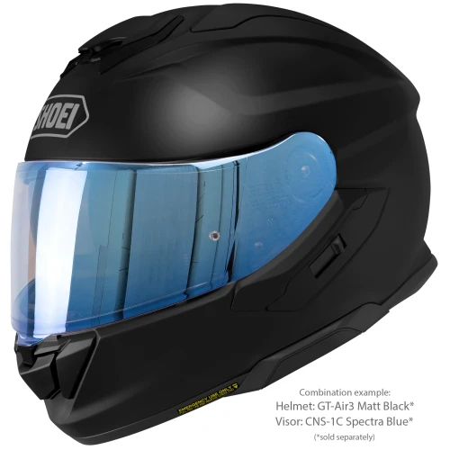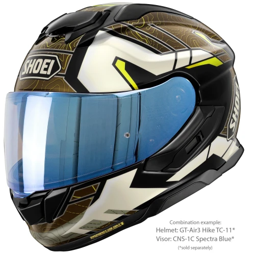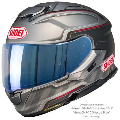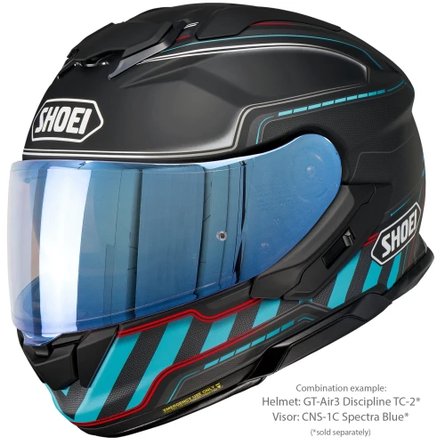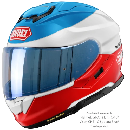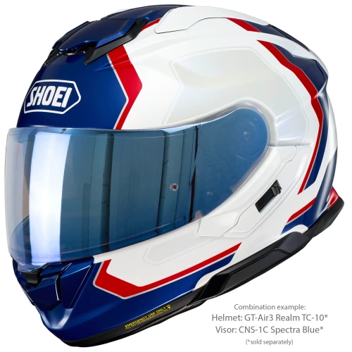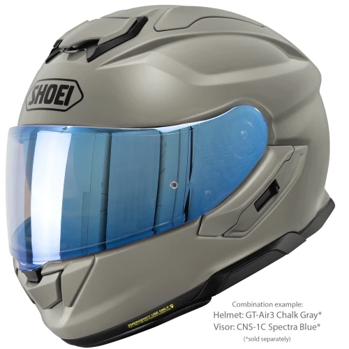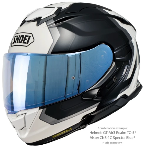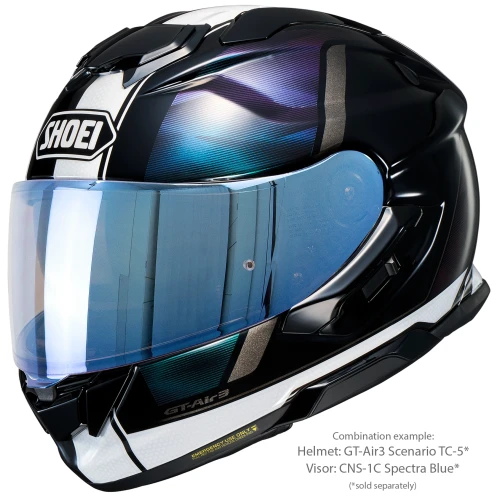 Shoei CNS-1C Spectra Blue er et originalt visir produsert spesielt for Shoei GT-Air 3. Den speilbelagte blå finishen reduserer lysinnslipp og bidrar til bedre komfort ved kjøring i sterkt dagslys.