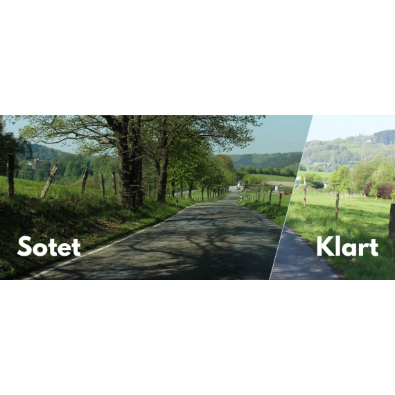 • Optimal sikt: Lystransmisjon på mellom tjue-tre og tjue-ni prosent, ideelt for bruk i sterkt sollys.