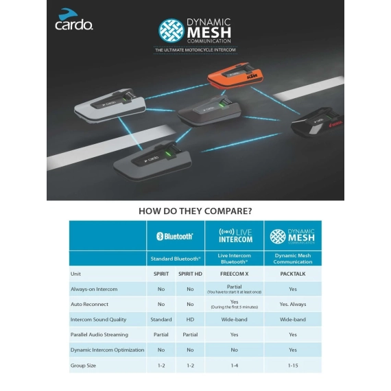 Cardo Bluetooth Intercom med DMC Mesh Kommunikasjon