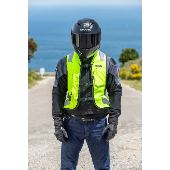 Helite Turtle 2 er en avansert airbagvest med mekanisk utløser koblet direkte til motorsykkelen via en lanyard. Den er ideell for førere som ønsker en kombinasjon av praktisk bruk og maksimal beskyttelse. Vesten er enkel å ta på over alle typer mc-jakker og gir optimal bevegelighet og komfort med sitt ergonomiske snitt, justerbare stropper og en myk neoprenkrage.
