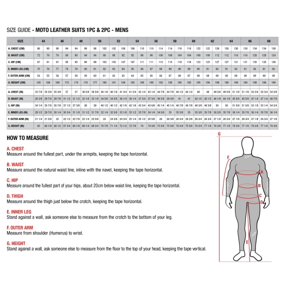 Størrelsestabell – Alpinestars 1-delt lærdress (Herre)