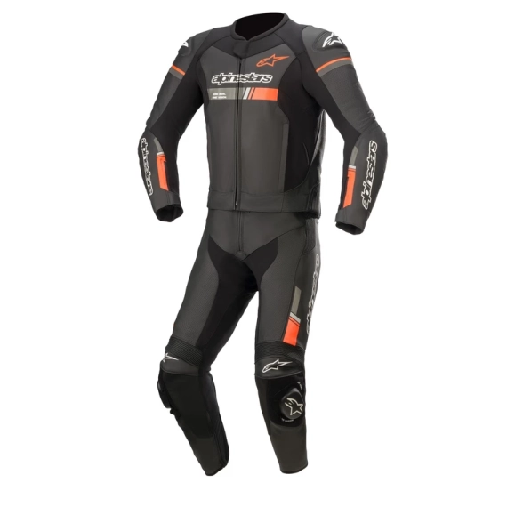 Alpinestars GP Force Chaser V2 2-delt Skinndress (Svart/Fluo Rød) – Racingdress i bovint skinn