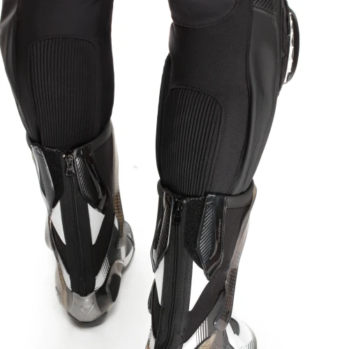Dressens aerodynamiske ryggpukkel er klargjort for vannpose-kit, og Boot-IN-konstruksjonen gir optimal integrasjon mot racingstøvler. Dette er en dress utviklet for maksimalt grep, kontroll og sikkerhet under racing- og trackday-forhold.