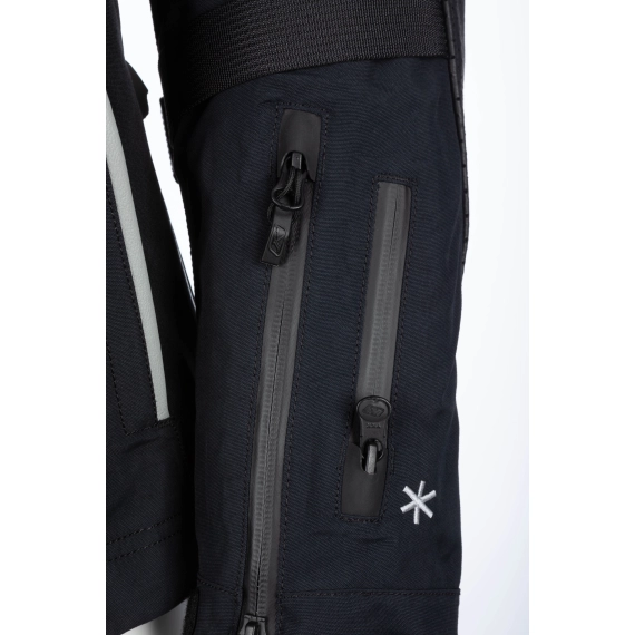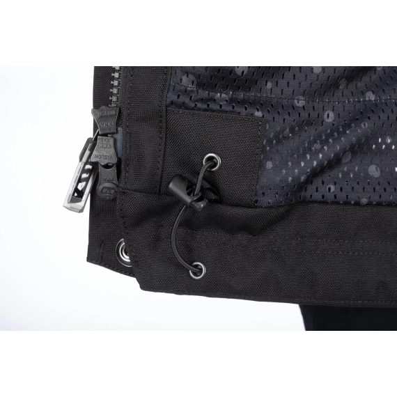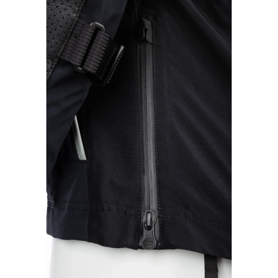 Passformen er utviklet for kvinner, av kvinner, med fokus på komfort over tid. Fukttransporterende og antimikrobiell meshfôring bidrar til et behagelig klima på innsiden, mens justeringer i midje, biceps og underarm gjør det enklere å tilpasse jakken til kropp og kjørestil. Zipper-gussets ved hoftene gir ekstra bevegelighet og bedre komfort i sittende posisjon. Jakken har også sammenkobling med bukse via glidelås.