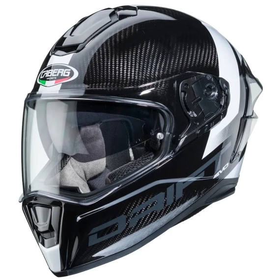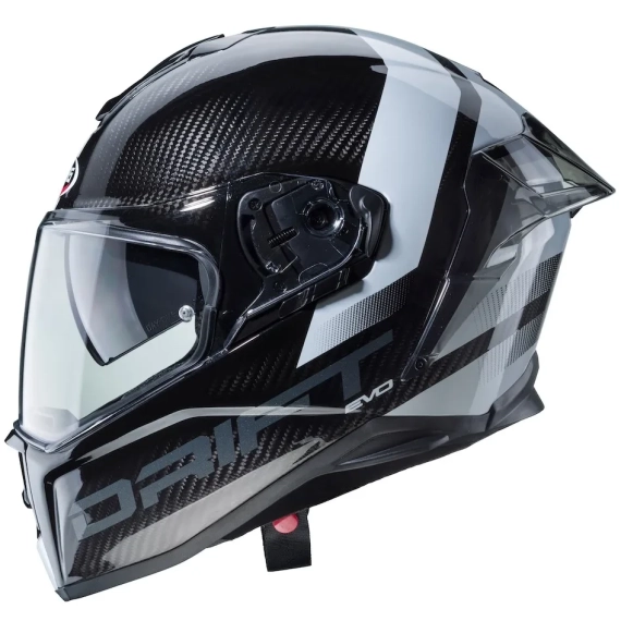 Caberg Drift EVO Carbon er en avansert helhjelm konstruert i karbonfiber for å oppnå lav vekt og høy styrke. Hjelmen er testet i vindtunnel for optimal aerodynamikk og stabilitet i høy fart, og passer godt til både sport og sporty touring.