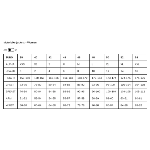 Konklusjon: Dainese Racing 5 Leather Jacket WMN er det ideelle valget for kvinnelige motorsyklister som søker en jakke som tilbyr høy beskyttelse, komfort og stil, samtidig som den er tilpasset forskjellige værforhold. Dens gjennomtenkte design, kompatibilitet med airbag og førsteklasses materialer gjør det til et utmerket valg for dedikerte motorsyklister.