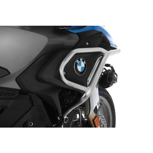 Wunderlich tankbøyler i Adventure Style gir effektiv beskyttelse av tank, kåpedeler, ramme og radiatorer. Sammen med motorbøyler danner de et gjennomtenkt beskyttelsessystem som fordeler kreftene ved velt eller fall og reduserer risikoen for skader.